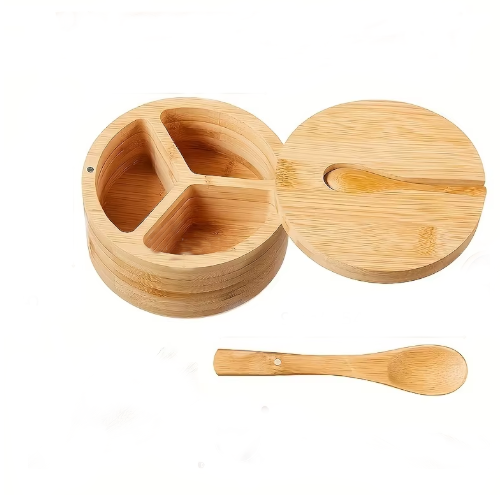 Verleihen Sie Ihrer Küche mit dieser Gewürzbox aus Bambus einen Hauch natürlicher Eleganz. Sie verfügt über zwei oder drei Fächer mit Klappdeckeln und eignet sich ideal zum Organisieren und Aufbewahren Ihrer Gewürze, Salze oder Kräuter, ohne Ihre Arbeitsfläche zu verschmutzen. Praktisch, langlebig und ästhetisch ansprechend – sie fügt sich harmonisch in jeden Küchenstil ein.